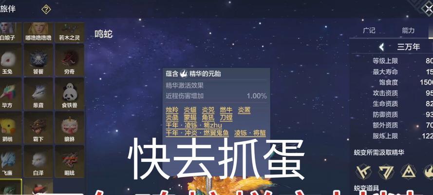 要想让宠物成功蜕变,首先需要选择合适的宠物。在选择时,要考虑到宠物的属性、技能、成长率等因素。